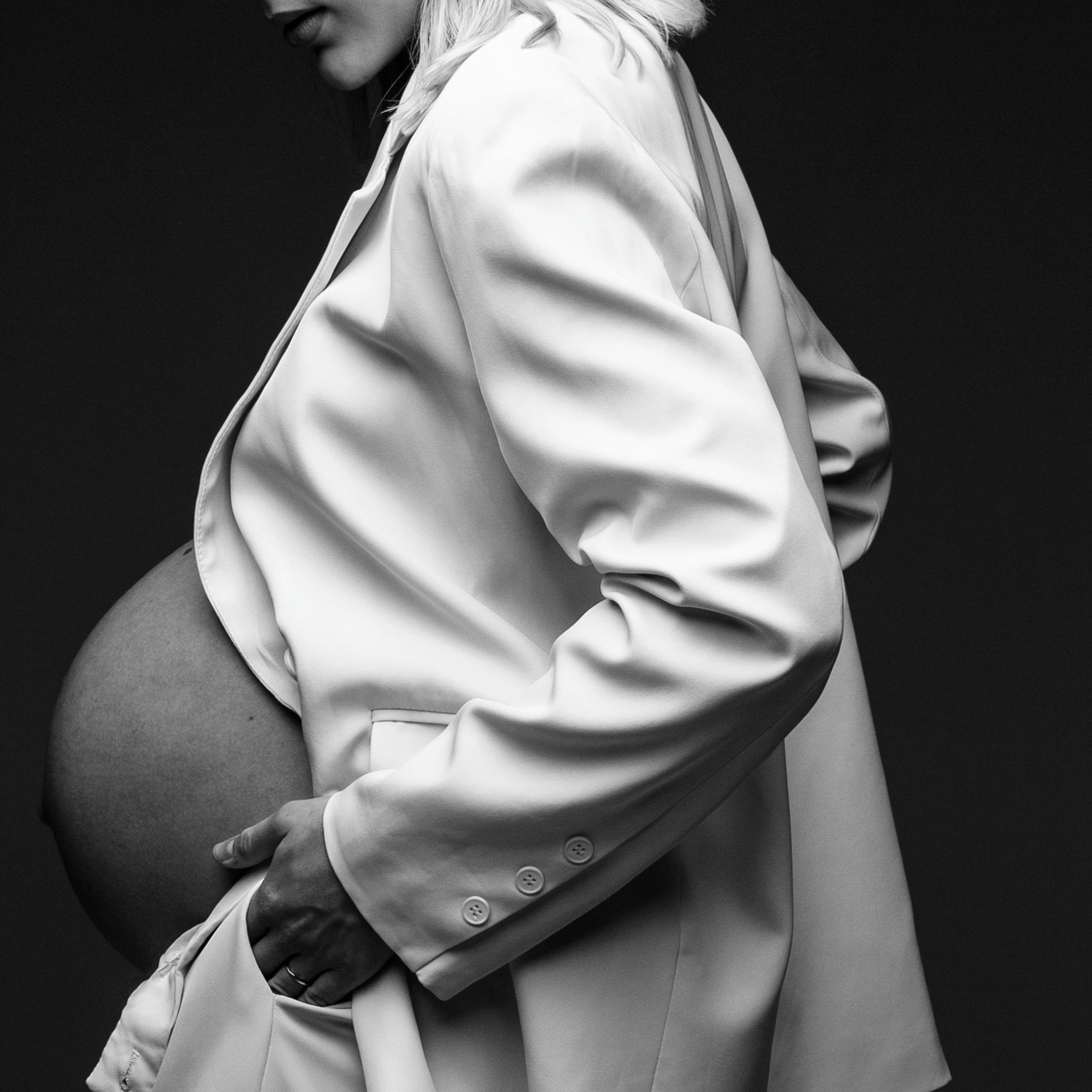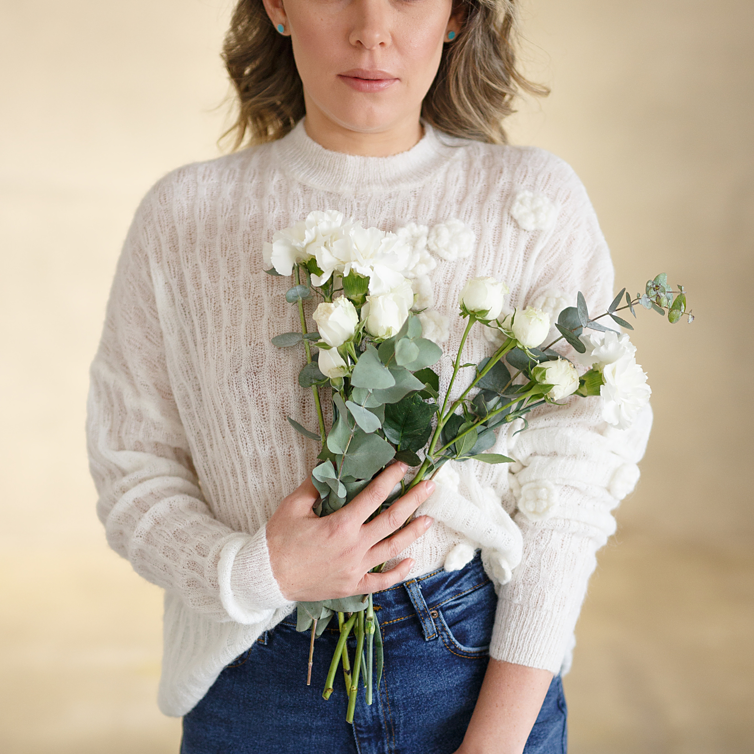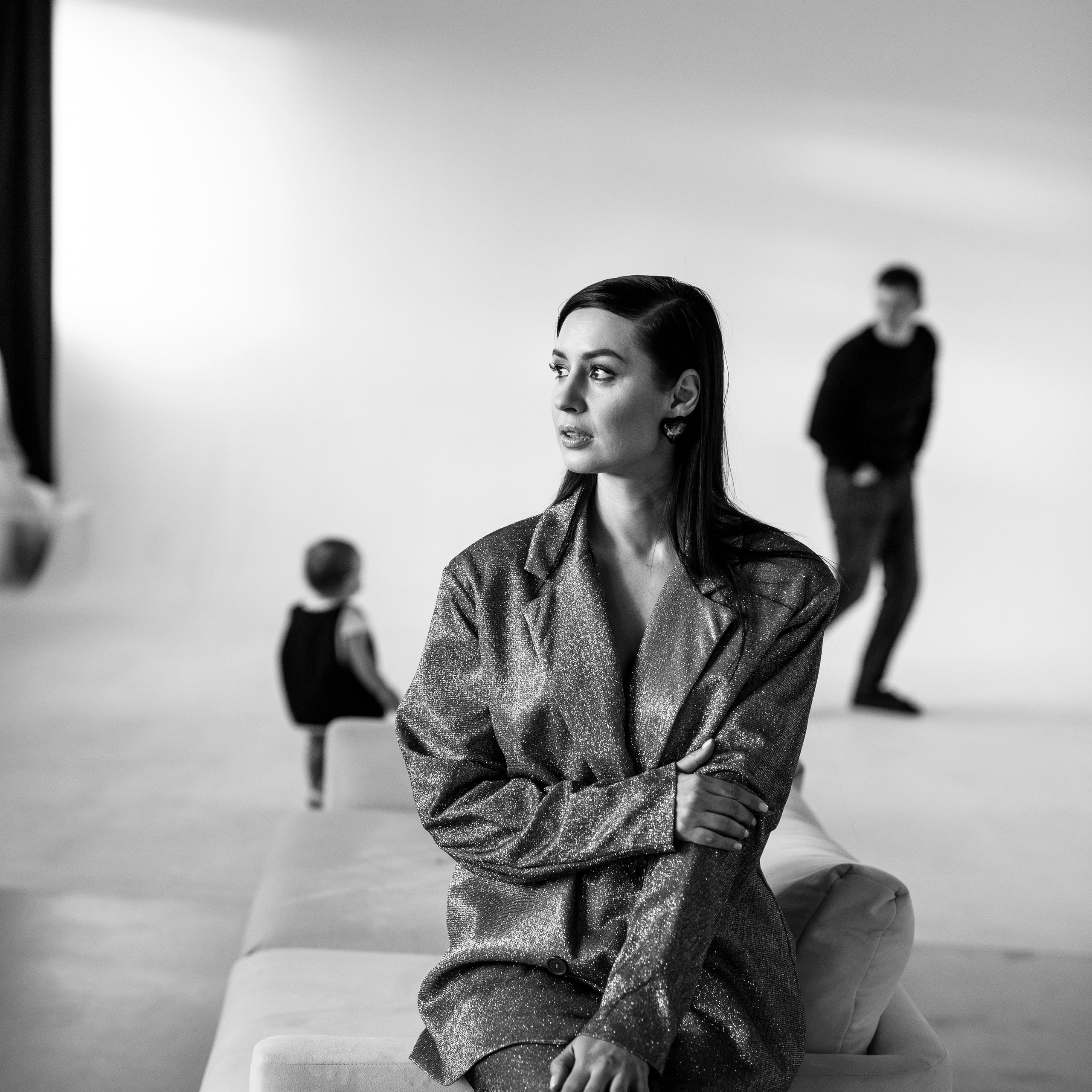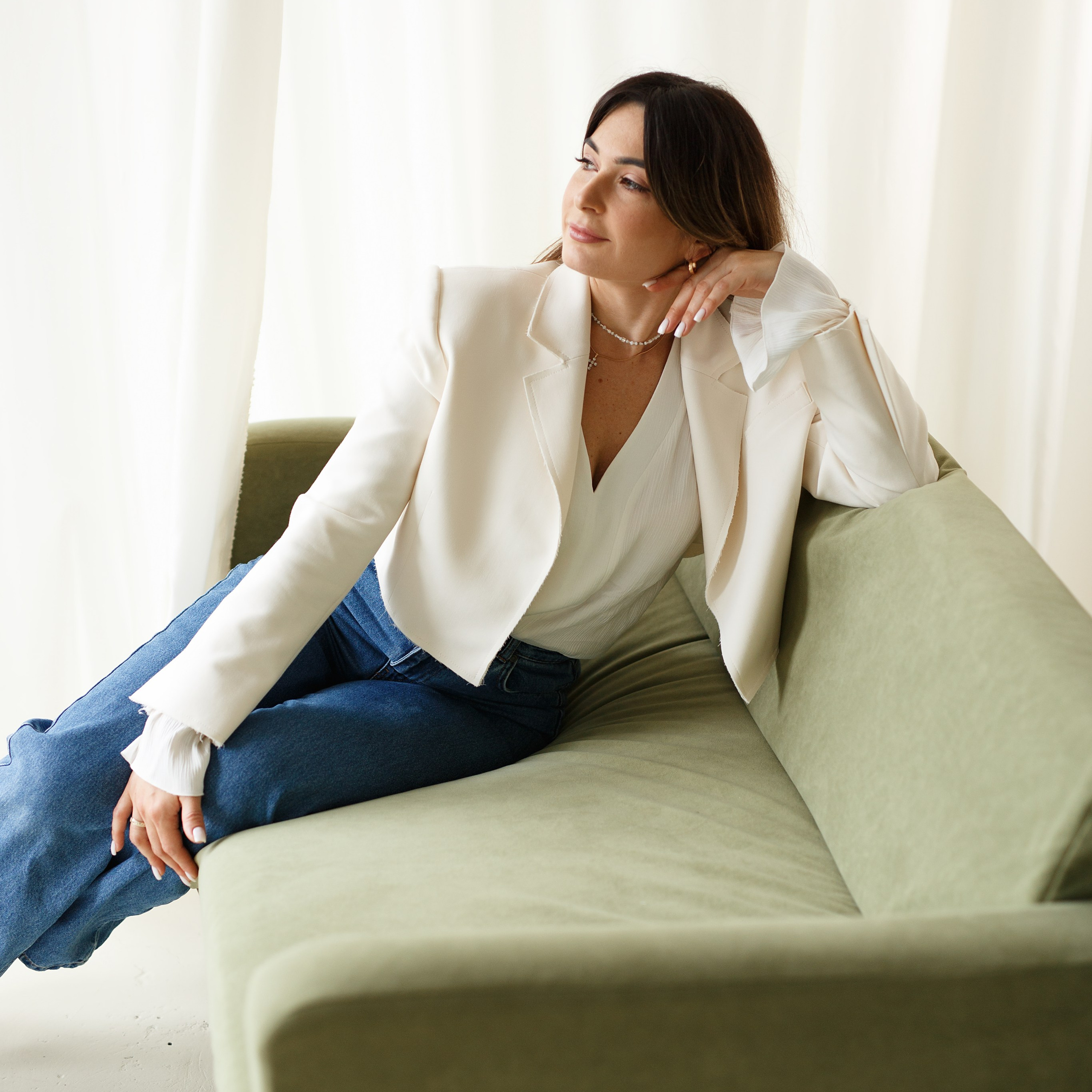 Есть белый стильный диван для семейных репортажей